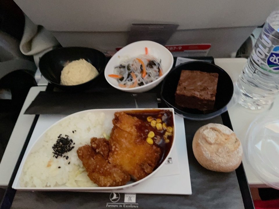 機内食のチキンカツ。