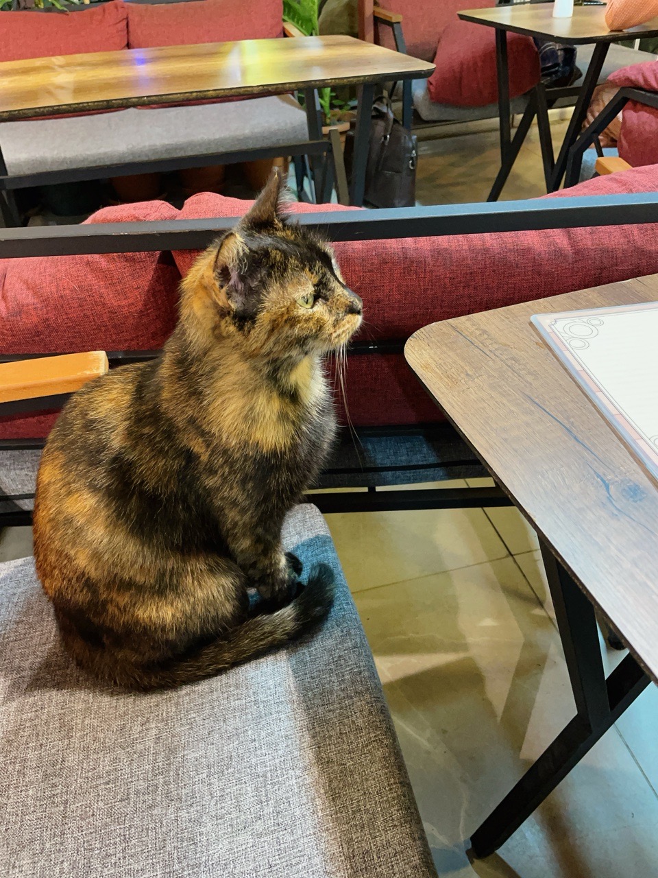 お客さんの席にいるにゃんこがいました。